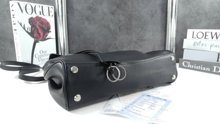 원 참 디테일 및 블랙 유즈드 스무드 카프스킨 소재의 로데오 미디엄 핸드백, 빈티지 실버 장식
