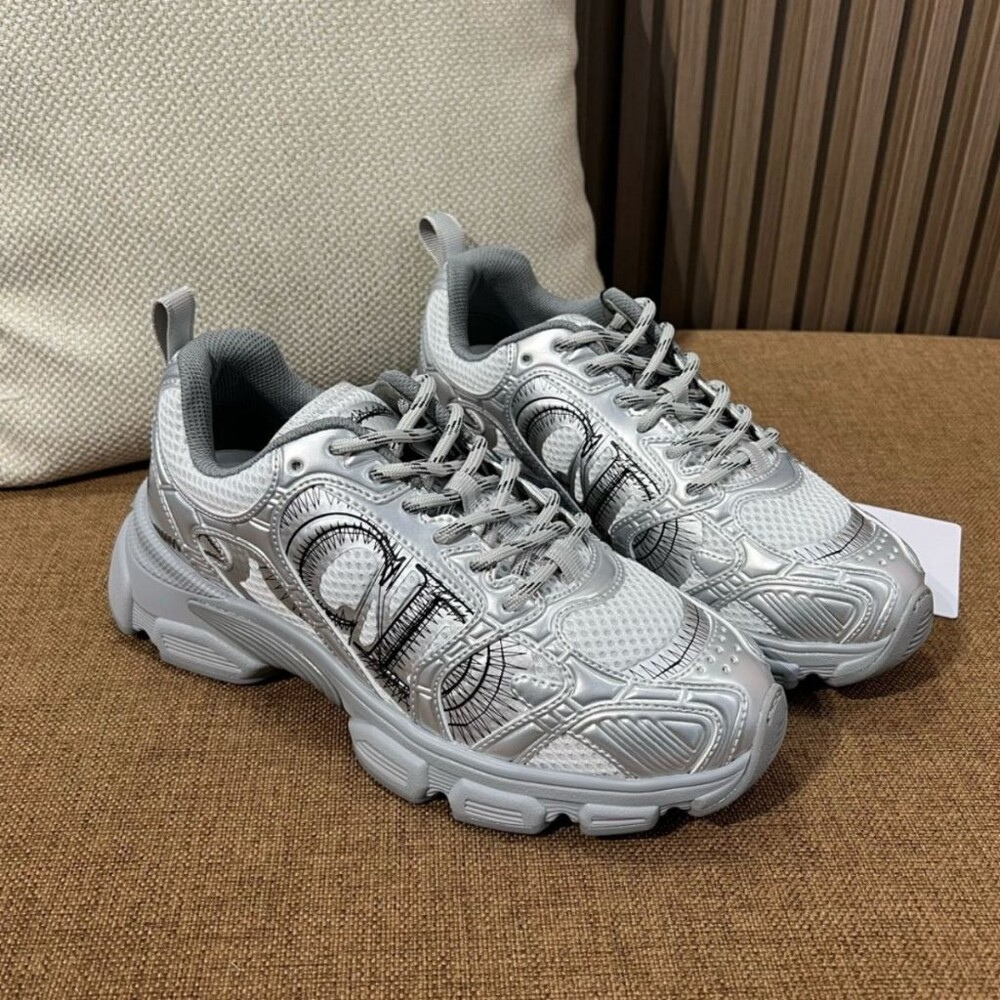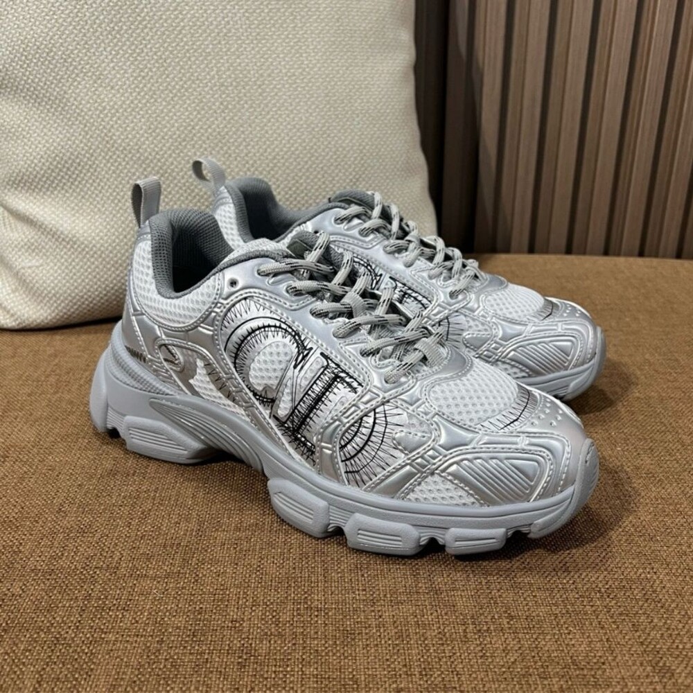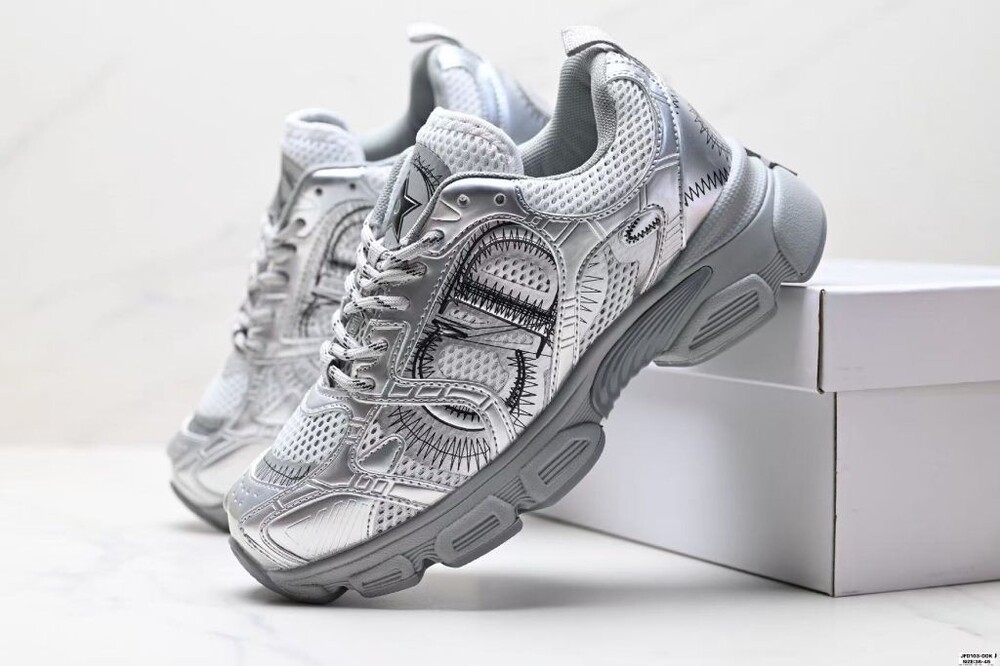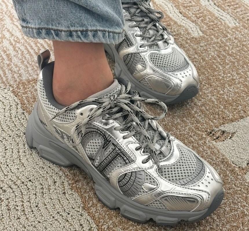 #DO 스니커즈 그레이 메시 & 실버 톤 래미네이트 레더