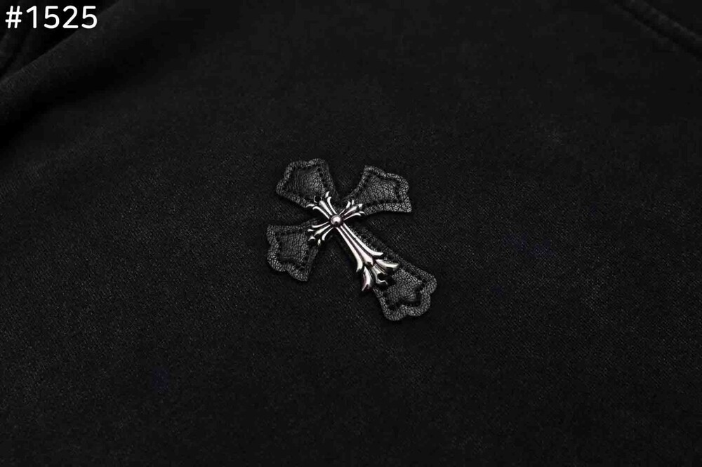 #CH 비즈 포인트 레더 크로스 후드티셔츠