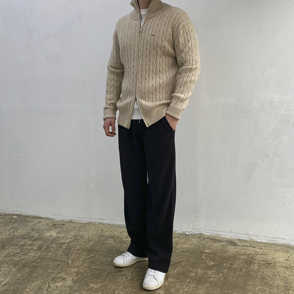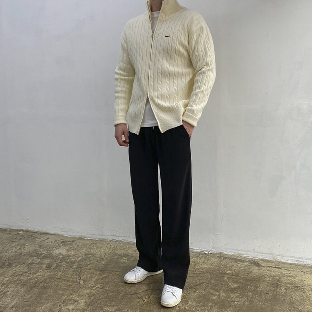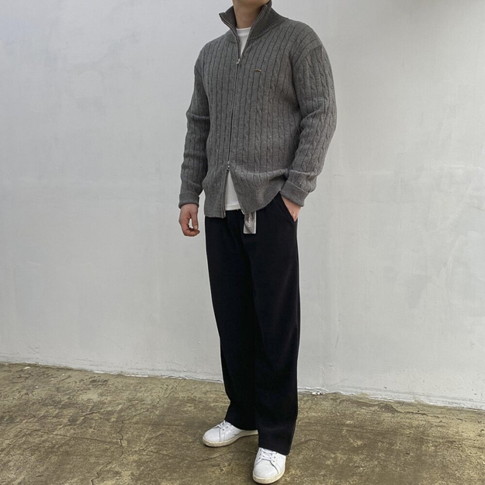 ★은은한 케이블 짜임 디테일이 전체적으로 들어가 클래식하면서도 세련된 무드를 연출해주며, 탄탄하게 잡아주는 실루엣으로 단정한 핏감을 자랑합니다.