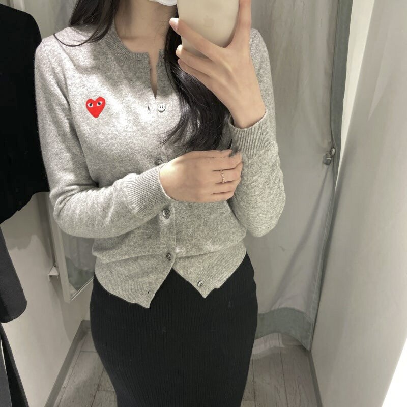 램스울 여성용 라운드 가디건 레드와펜