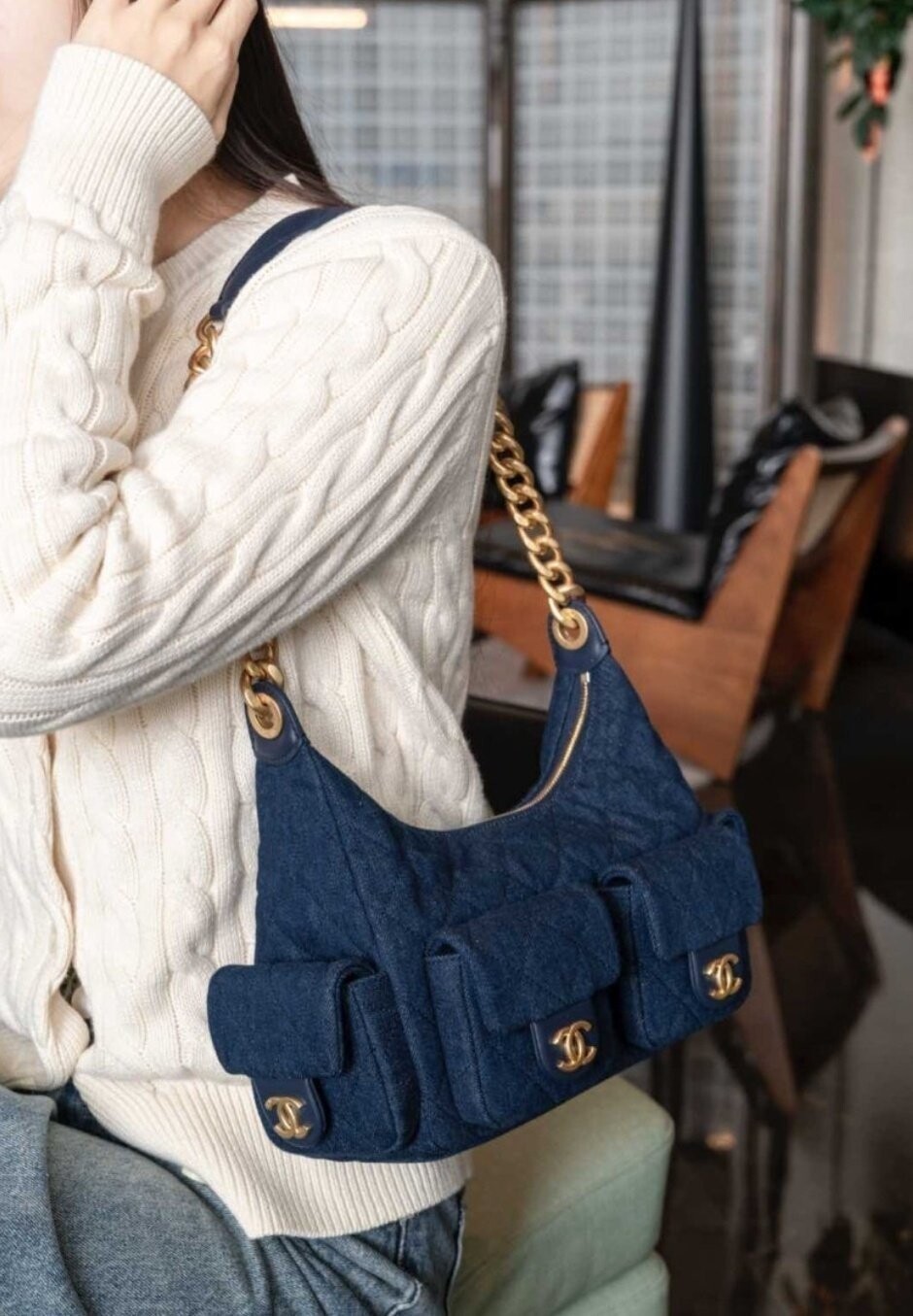 #CN 25 투포켓 데님 호보백 z