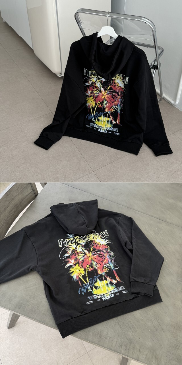 #YM 야자수 그래픽 후드(블랙)