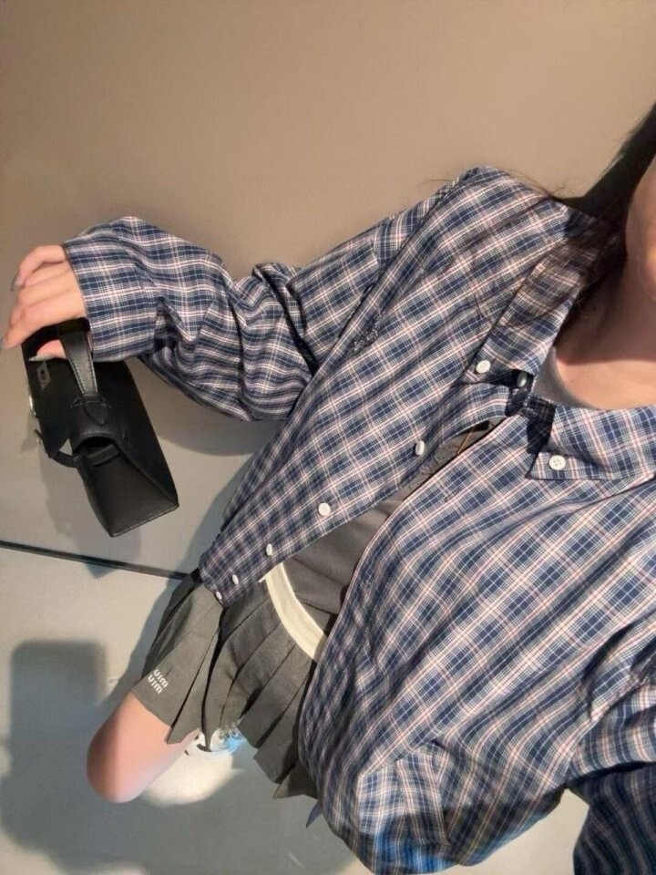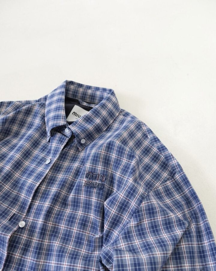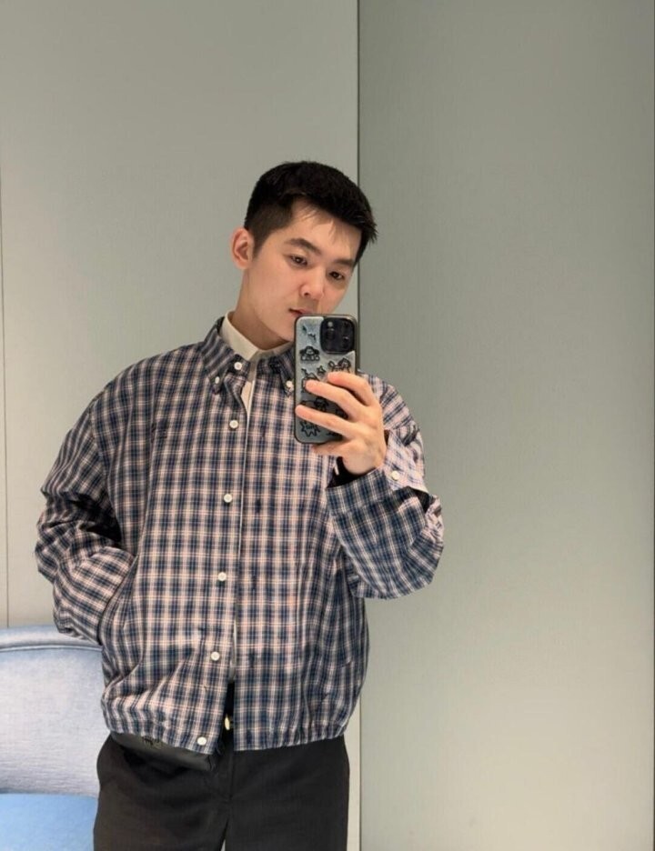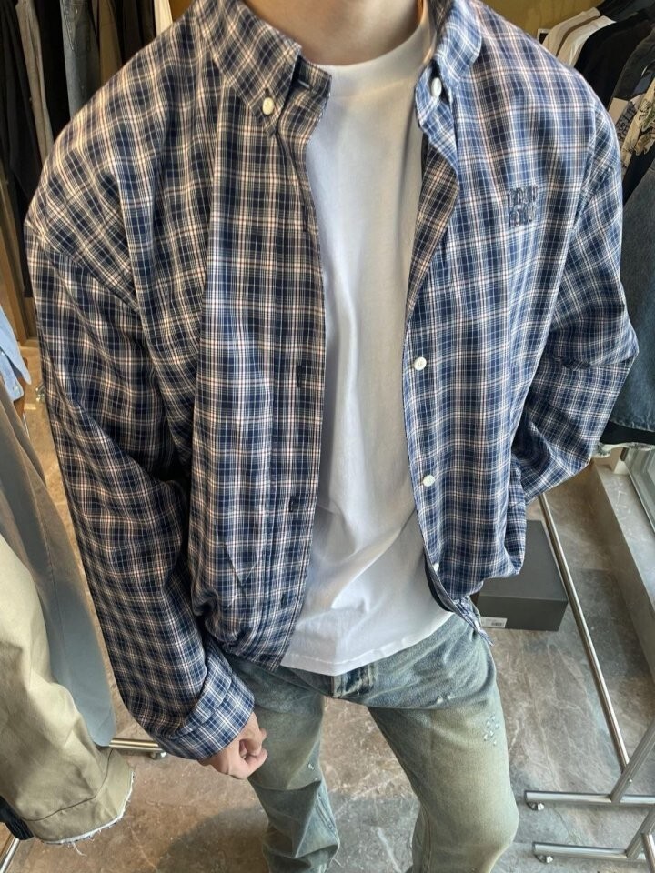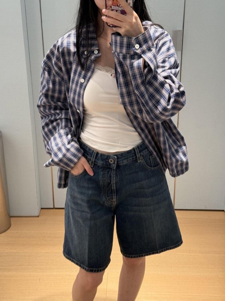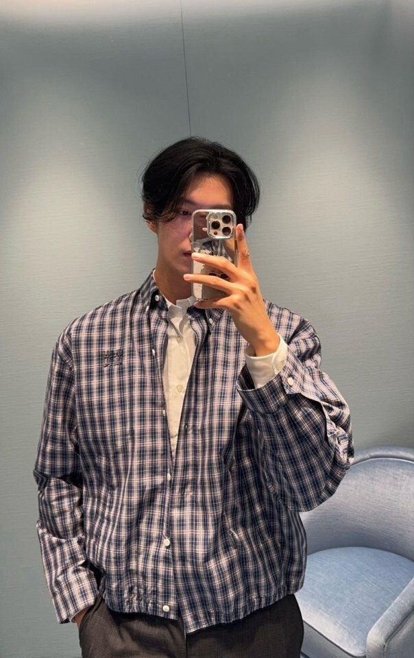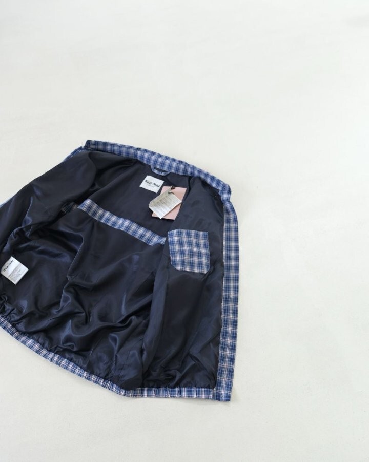 26 깅엄 체크 라이트 블루종 자켓 - 수입