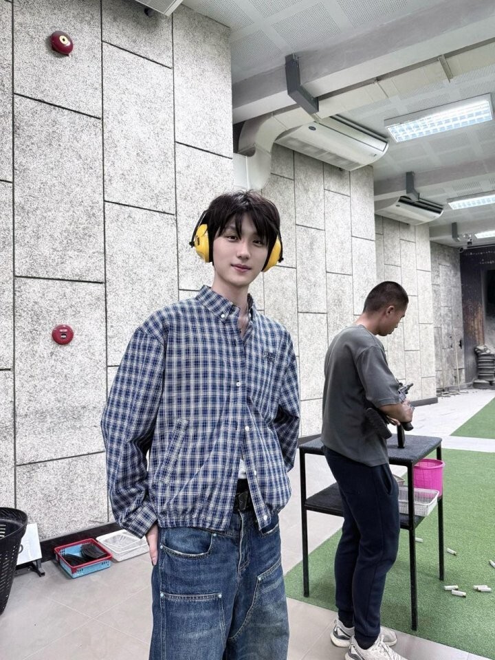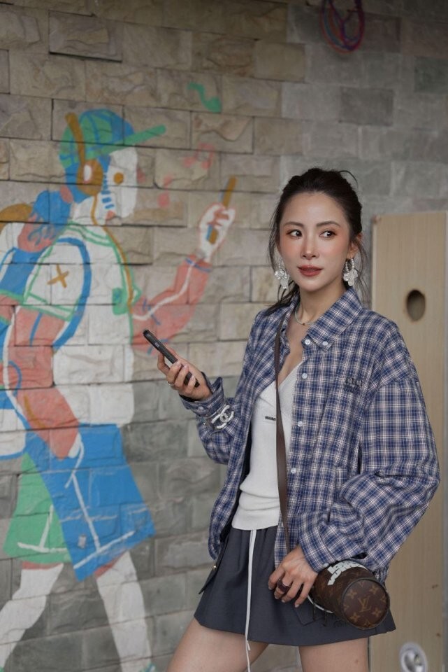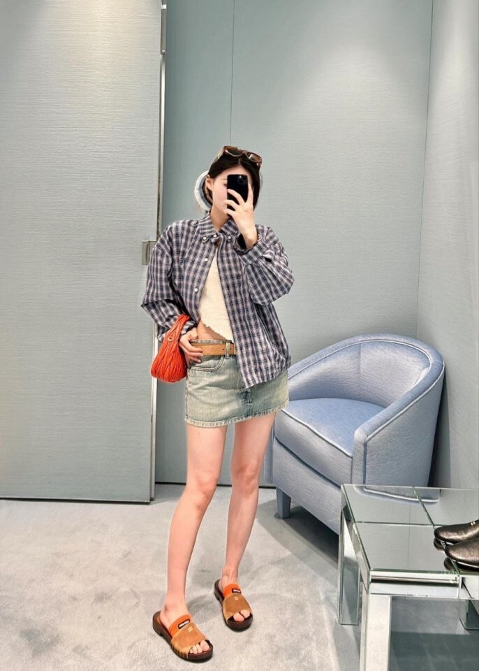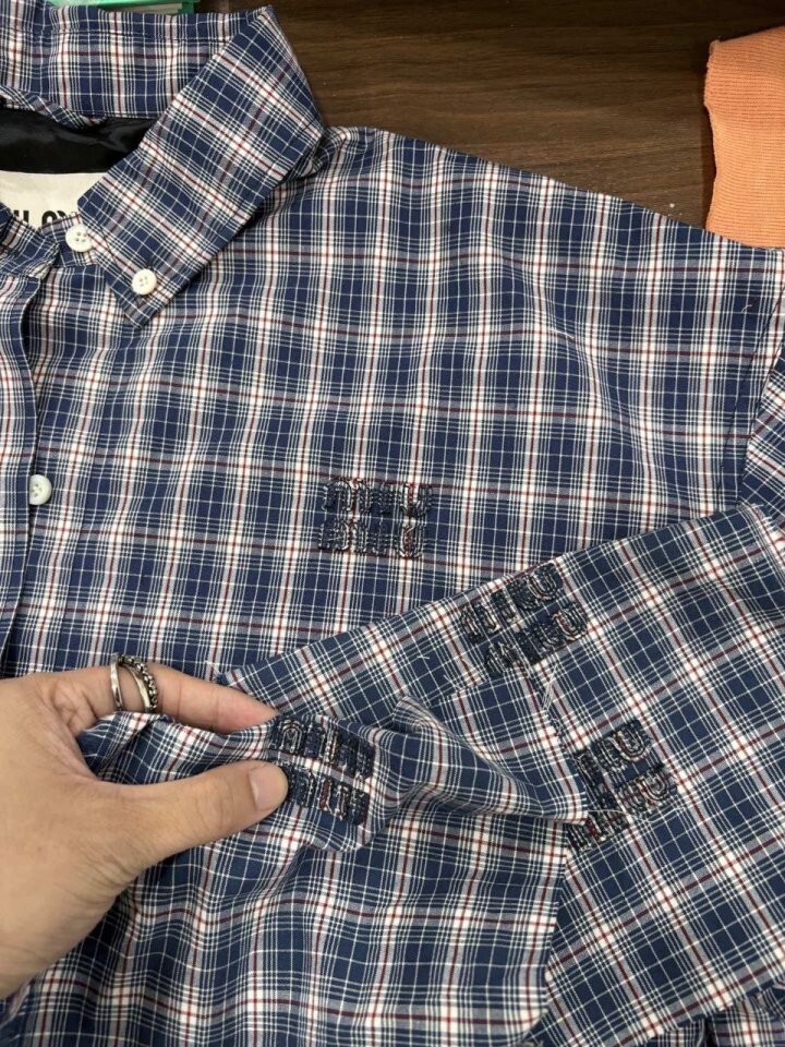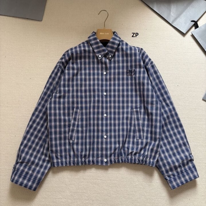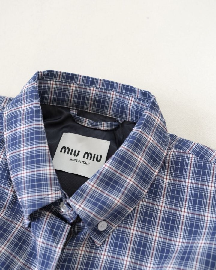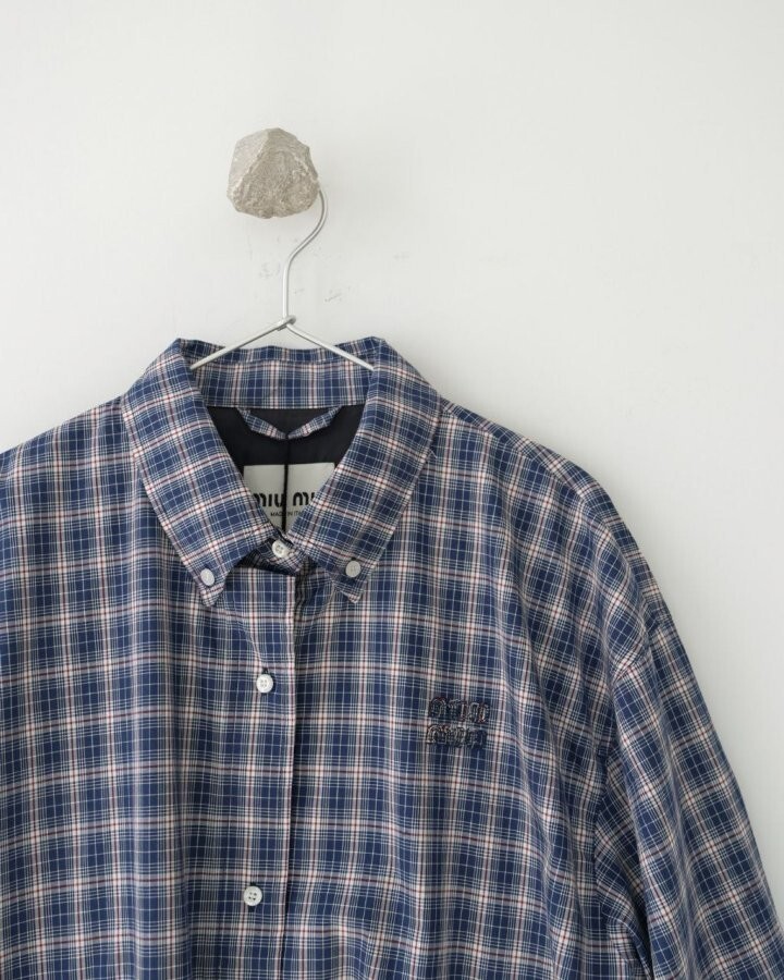 26 깅엄 체크 라이트 블루종 자켓 - 수입