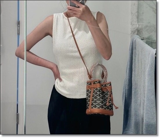넓은 가죽 핸들과 조절 가능한 드로스트링 여밈으로 일상생활에서 사용하기 이상적인 아이템이며, 탈부착 가능한 가죽 스트랩을 통해 핸드백, 숄더백, 크로스백으로 자유롭게 연출할 수 있습니다.