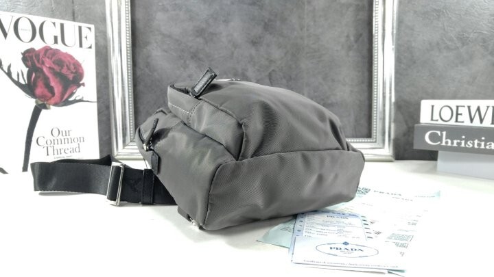 패딩 처리된 우븐 나일론 핸들 맞춤 조절형 나일론 숄더 스트랩 최대 길이 105cm - 최소 길이 60cm - 최대 드롭 55cm - 최소 드롭 30cm 앞면 에나멜 메탈 트라이앵글 로고 지퍼 클로저 외부 지퍼 포켓 1개 내부 지퍼 포켓 1개와 패치 포켓 1개 리나일론 라이닝
