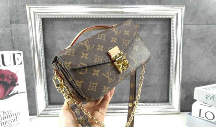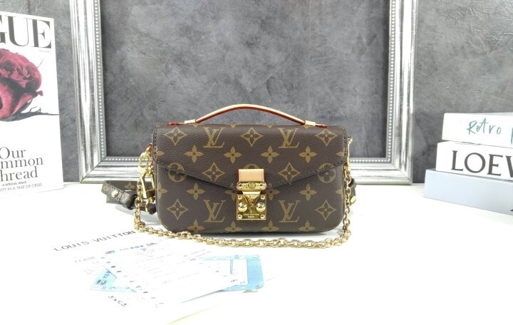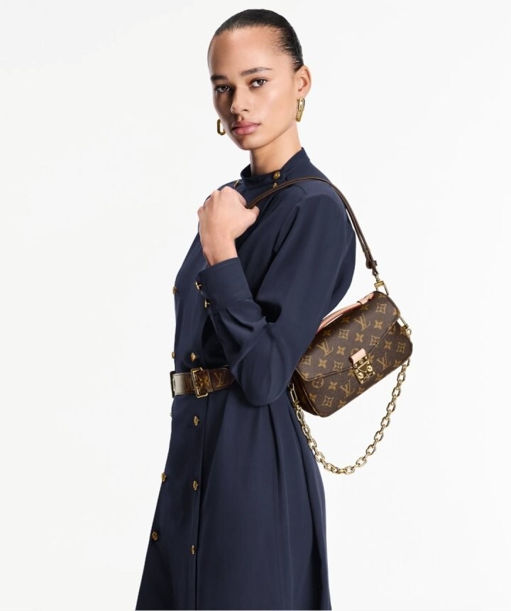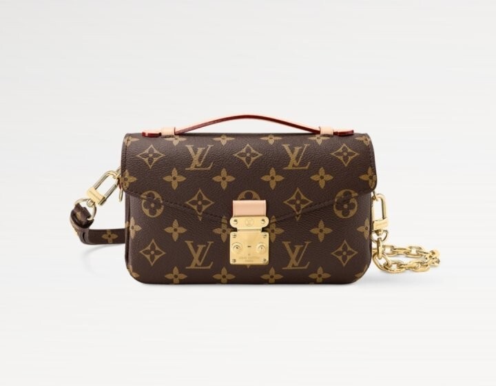 모노그램 캔버스와 천연 카우하이드 가죽 트리밍 및 S락 시그니처가 조화를 이루는 포쉐트 메티스 이스트 웨스트 백. 짧은 숄더 백 스타일로 트렌디하게 연출할 수 있는 골드 색상의 체인과 같은 새롭고 현대적인 디테일과 하우스의 상징적인 요소가 어우러진 디자인. 스마트폰을 보관할 수 있는 넉넉한 크기. 세 개의 내부 수납공간과 내부 및 외부의 지퍼형 포켓을 갖춘 아이템.