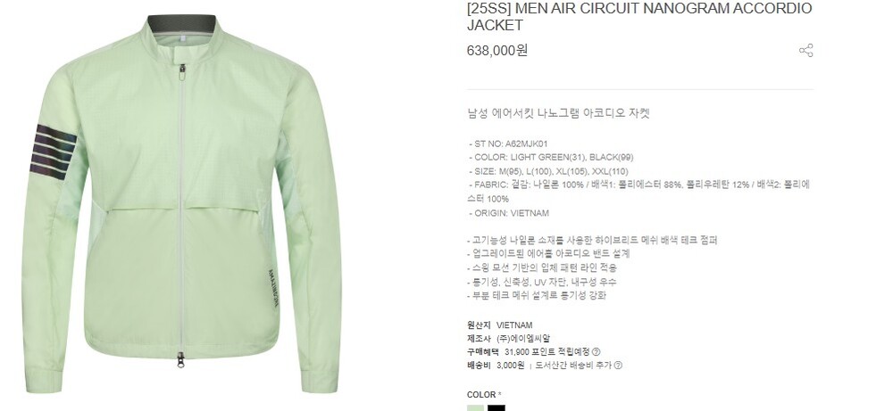 #AZ 남성 에어서킷 나노그램 아코디오 자켓