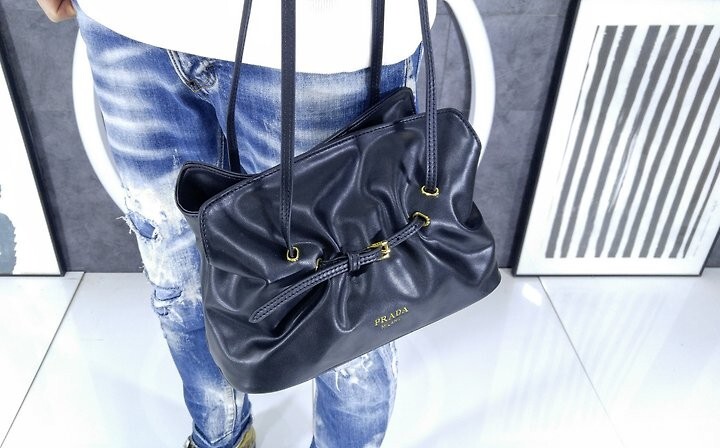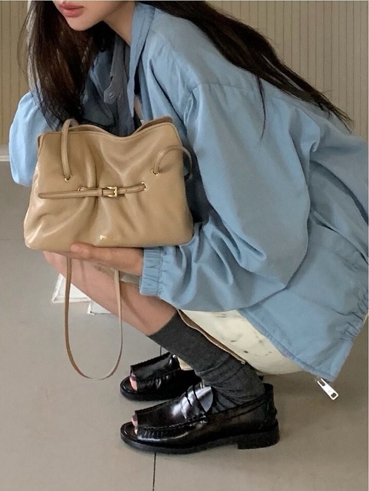 얇은 벨트가 나파 가죽 액세서리의 볼륨을 형성해 부드러운 주름과 터크를 연출.