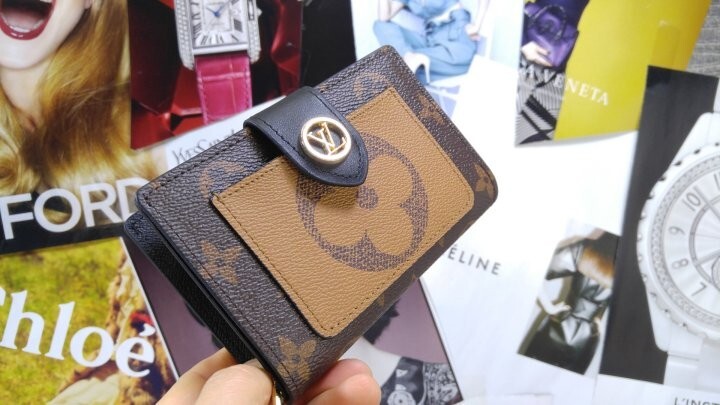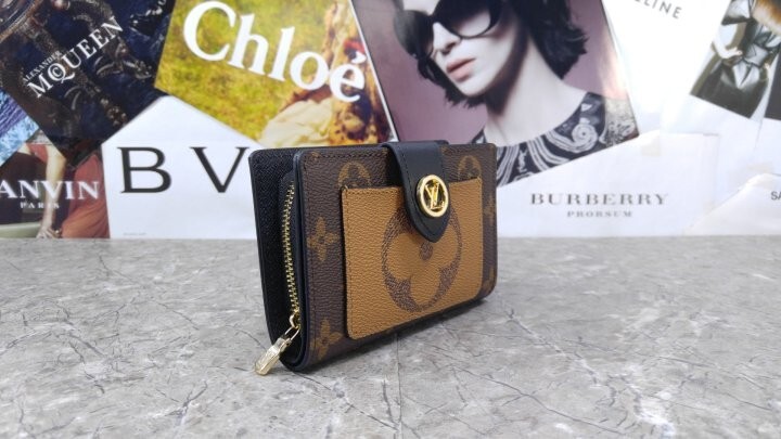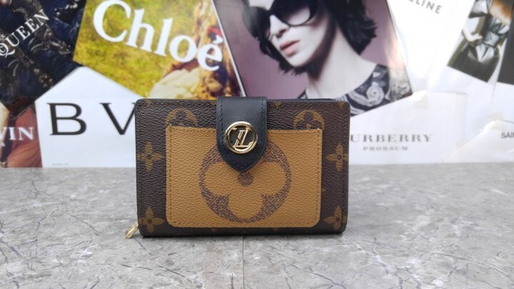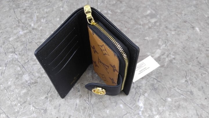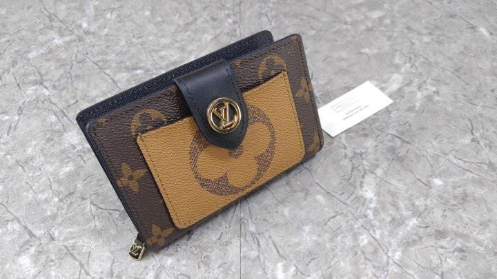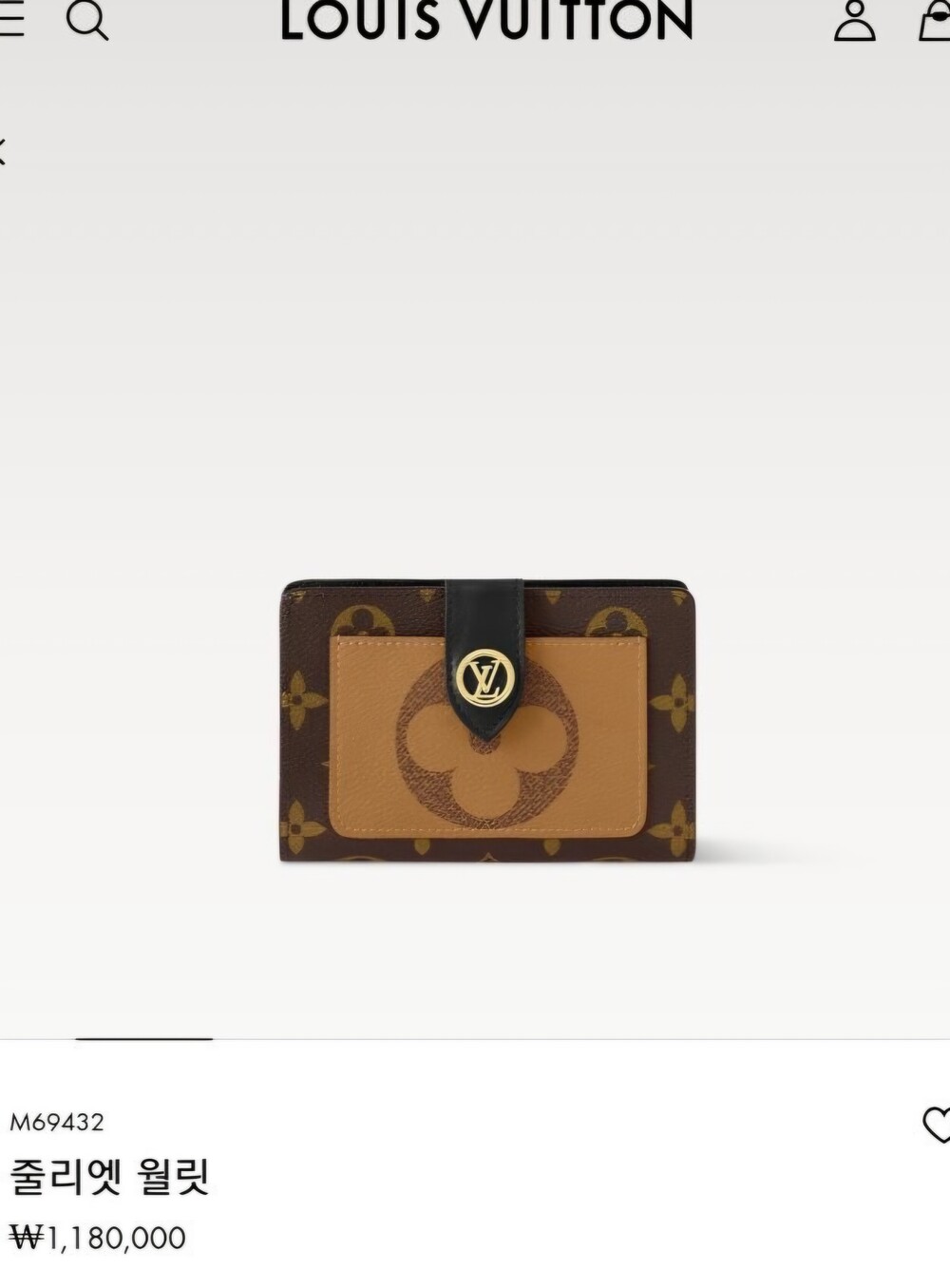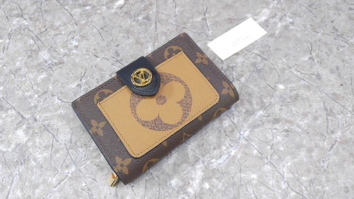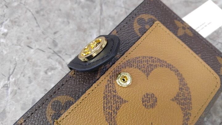 아이코닉한 모노그램 캔버스 소재로 선보이는 줄리엣 월릿. 모노그램 자이언트 리버스 캔버스 소재의 독특한 앞면 포켓으로 포인트를 준 디자인. 네 개의 카드 슬롯, 지폐용 포켓 및 지퍼형 동전 수납공간으로 이루어진 공간 효율적인 구조가 특징. 적당한 미디엄 사이즈의 컴팩트한 아이템. 골드 톤 LV 서클 프레스 스터드형 잠금장치.