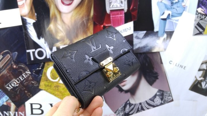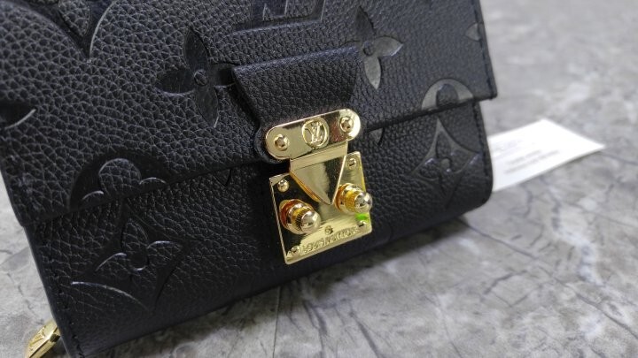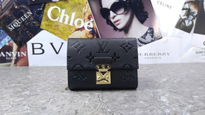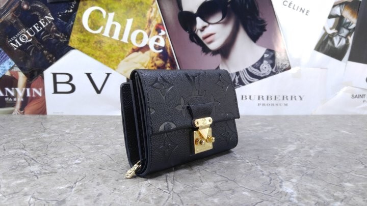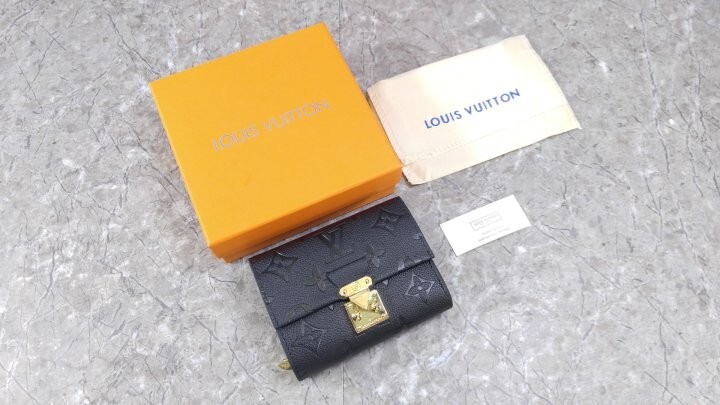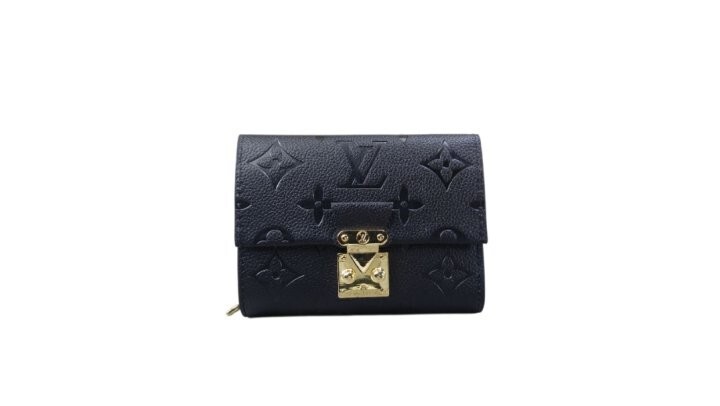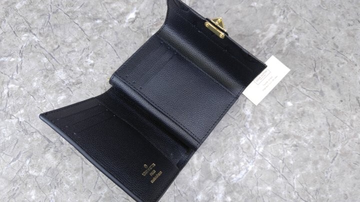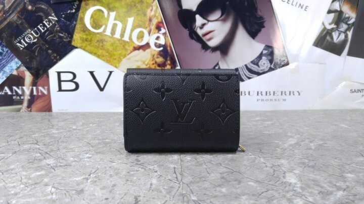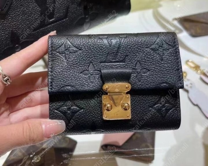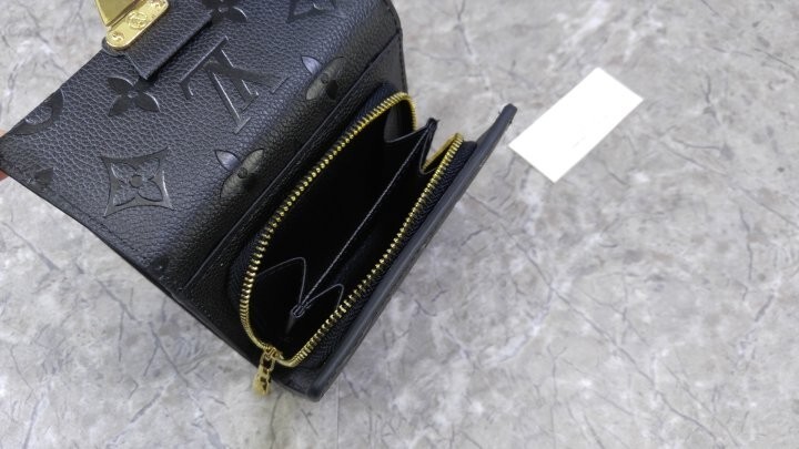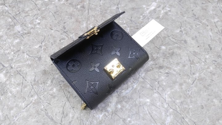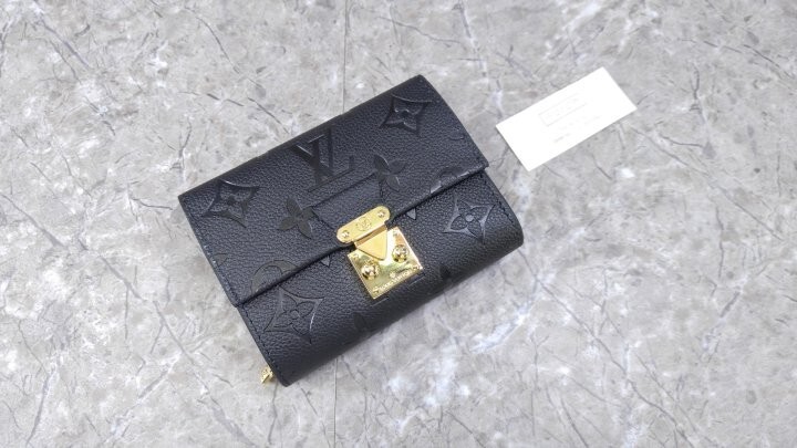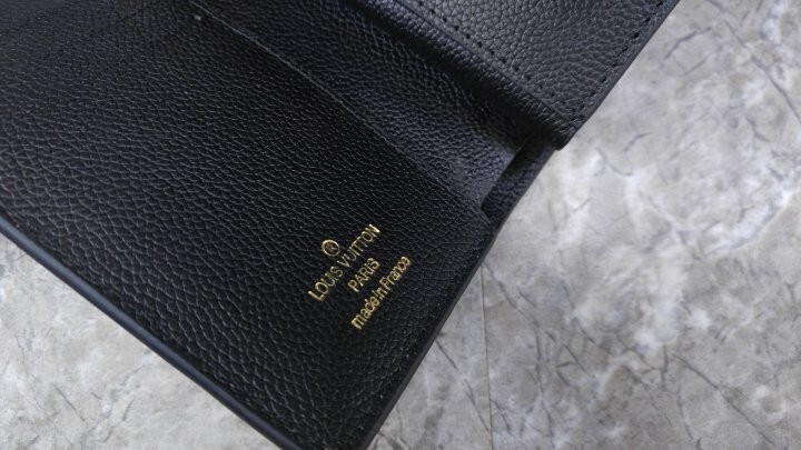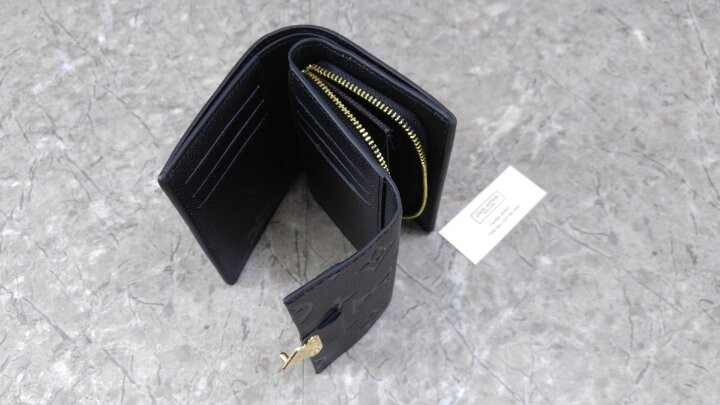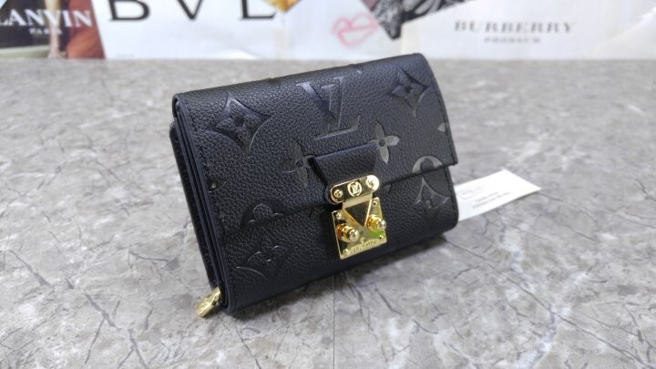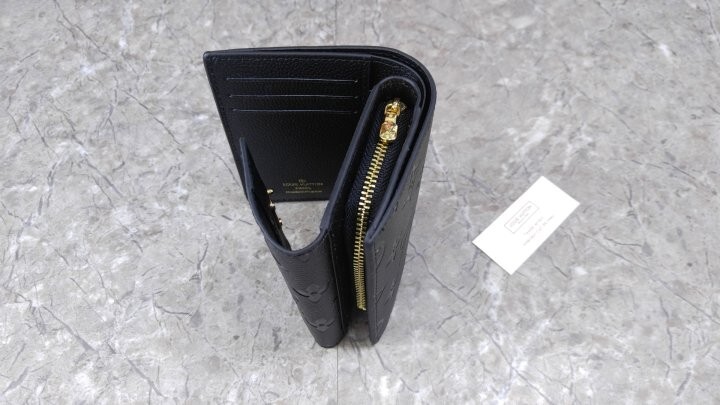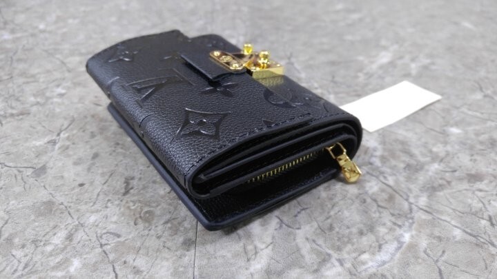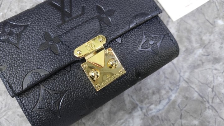 블랙 부드러운 모노그램 앙프렝뜨 엠보스드 그레인 카우하이드 가죽 카우하이드 가죽 안감 골드 톤 금속 디테일 S락 잠금장치 거싯을 댄 지퍼형 코인 포켓 플랫 포켓 2개 카드 슬롯 6개