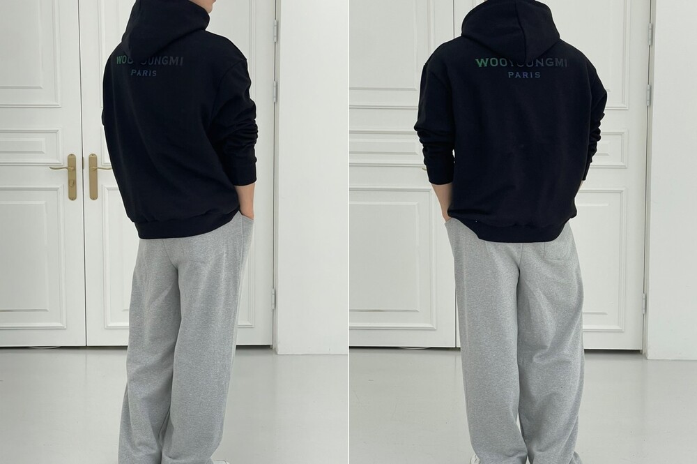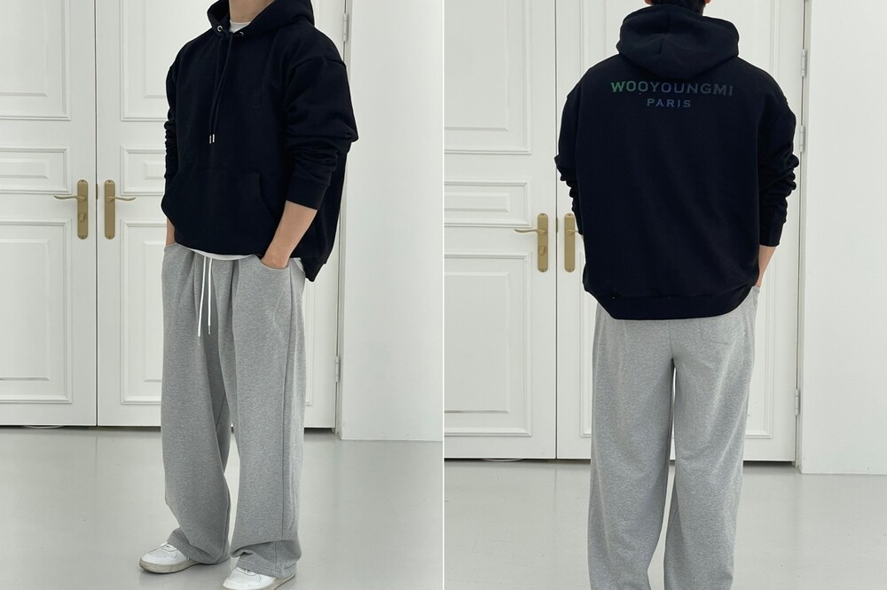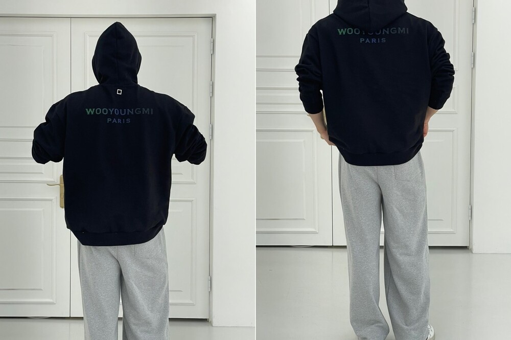 #YM 그라데이션 엠보싱 백로고 후드(블랙)