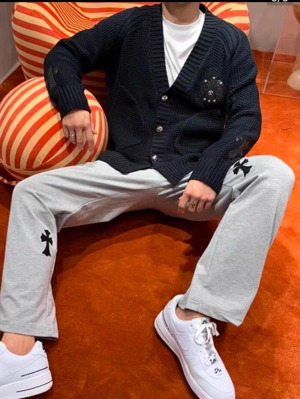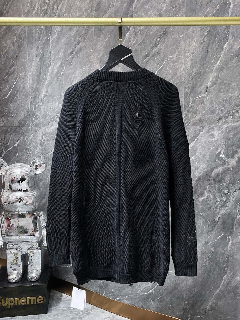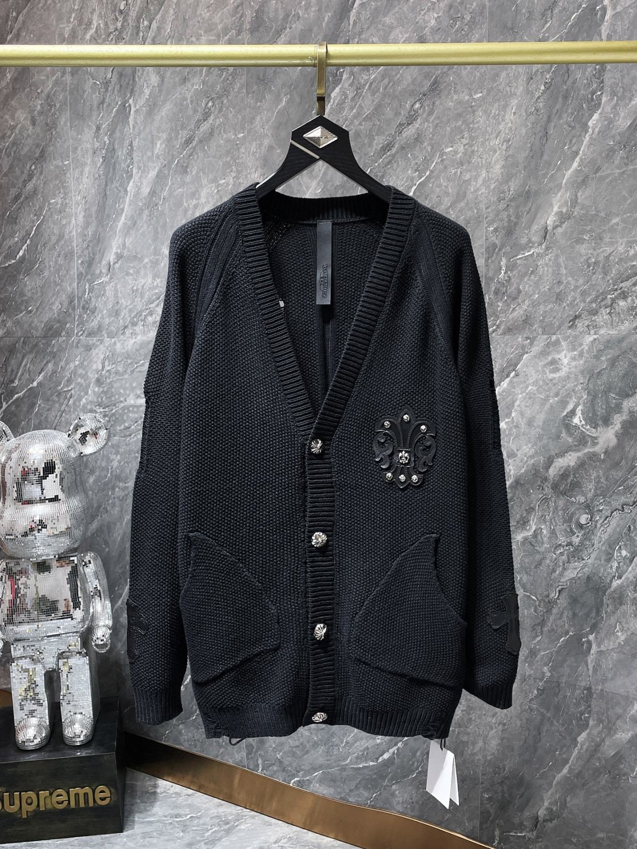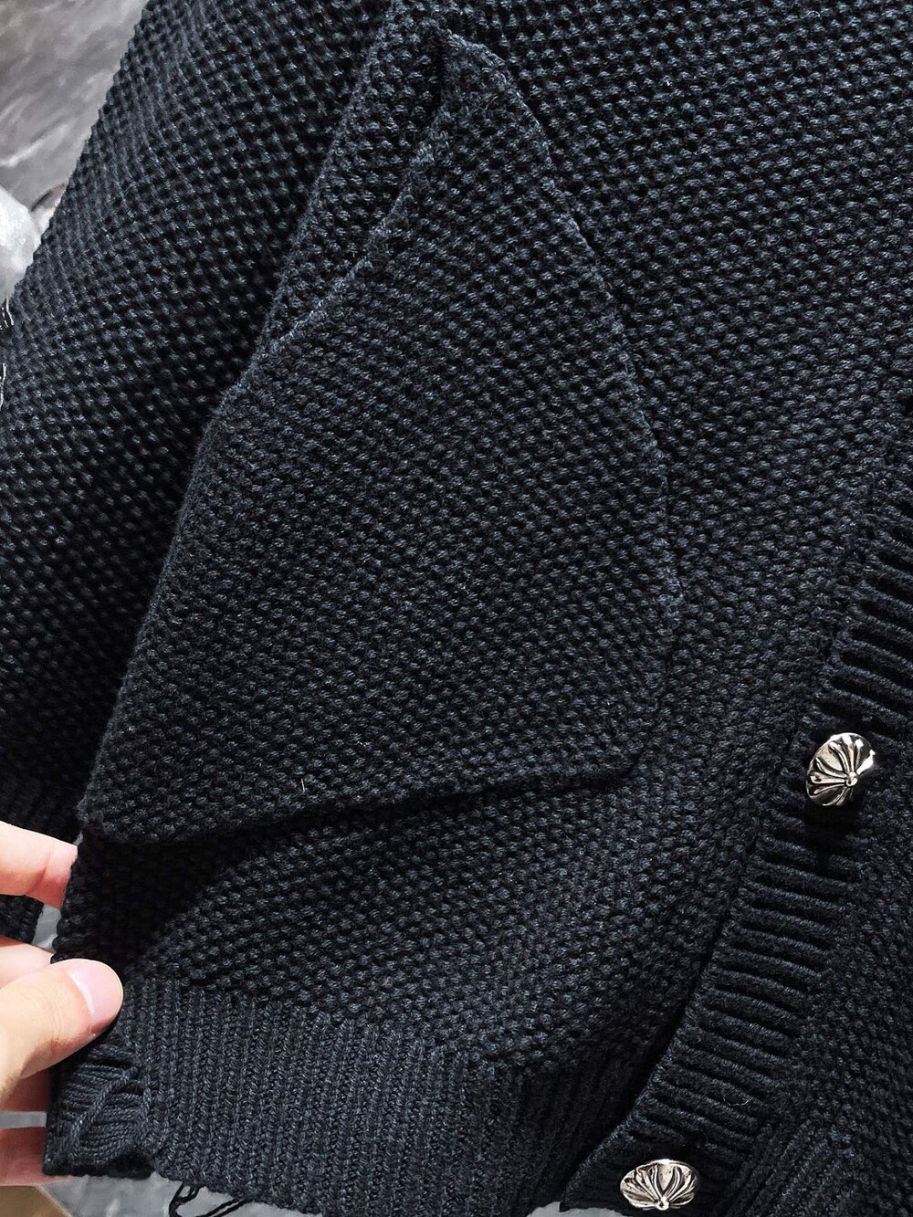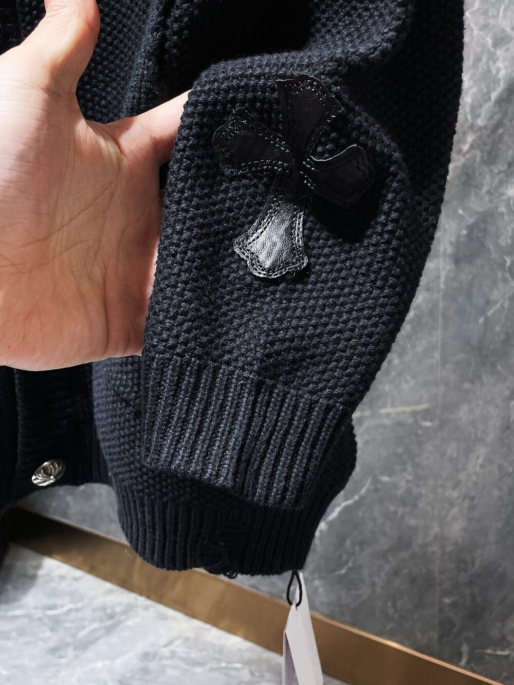 #CH 가죽패치 데미지 니트 가디건 v