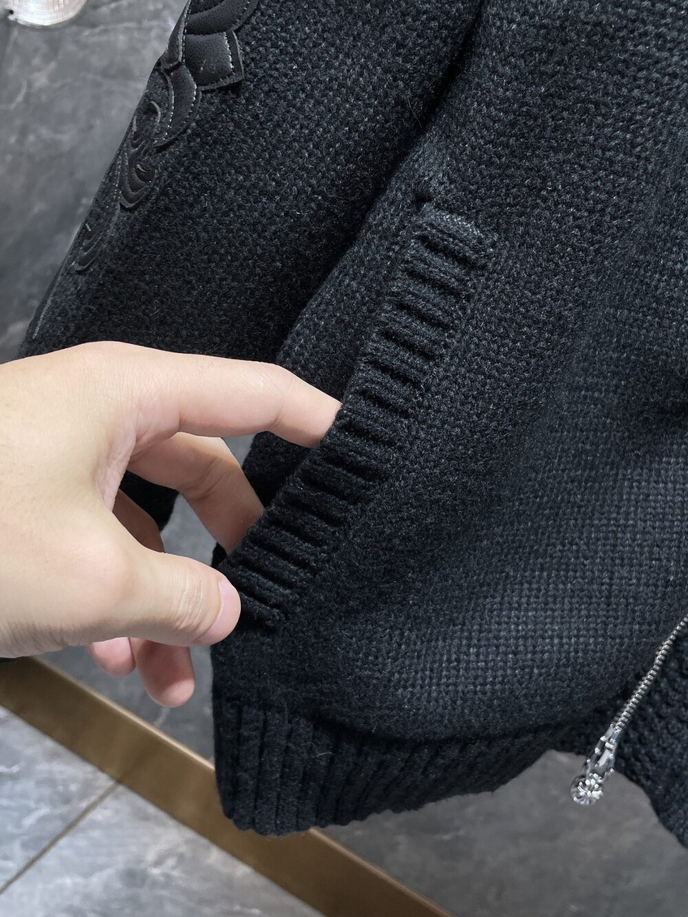 #CH 가죽패치 니트 후드 집업
