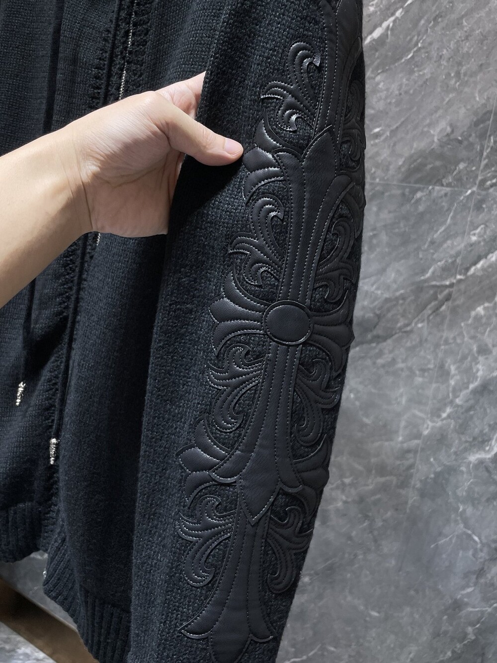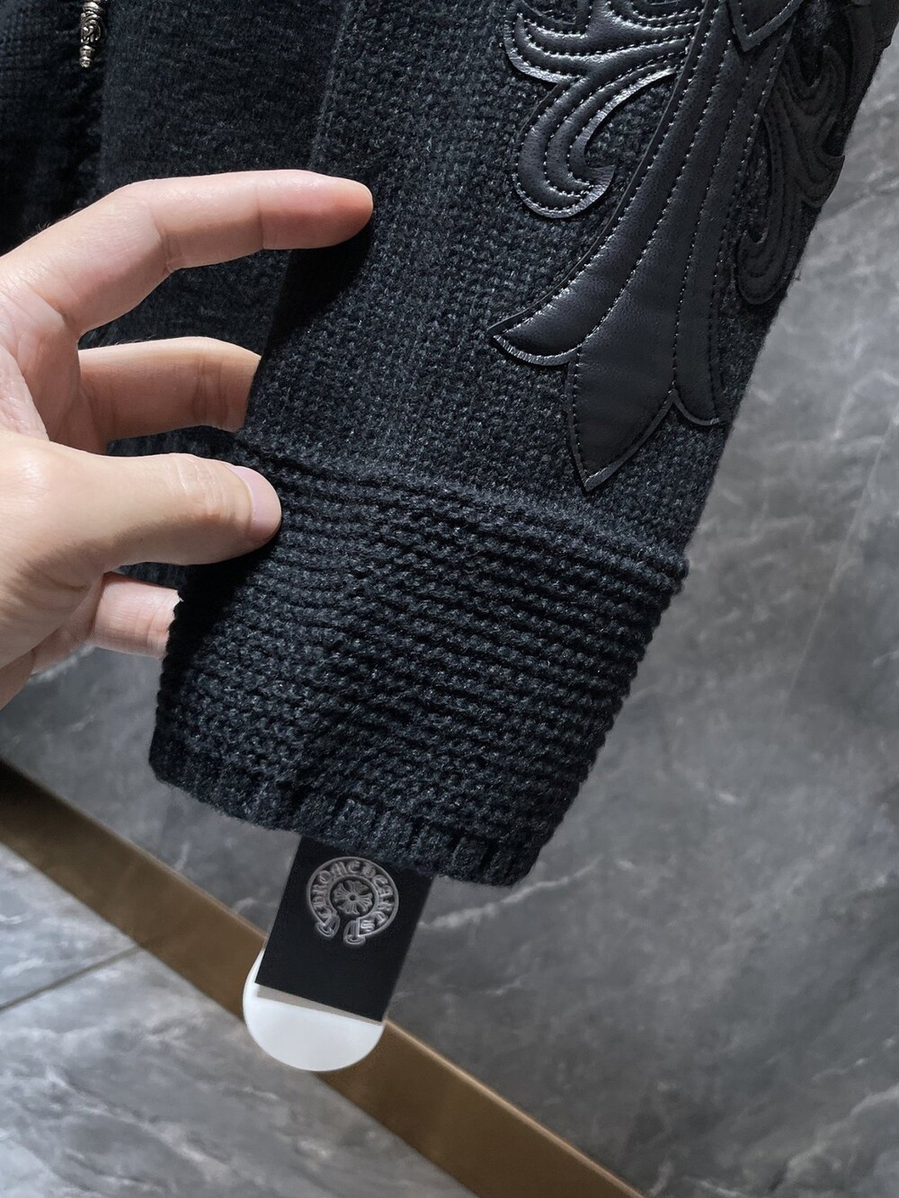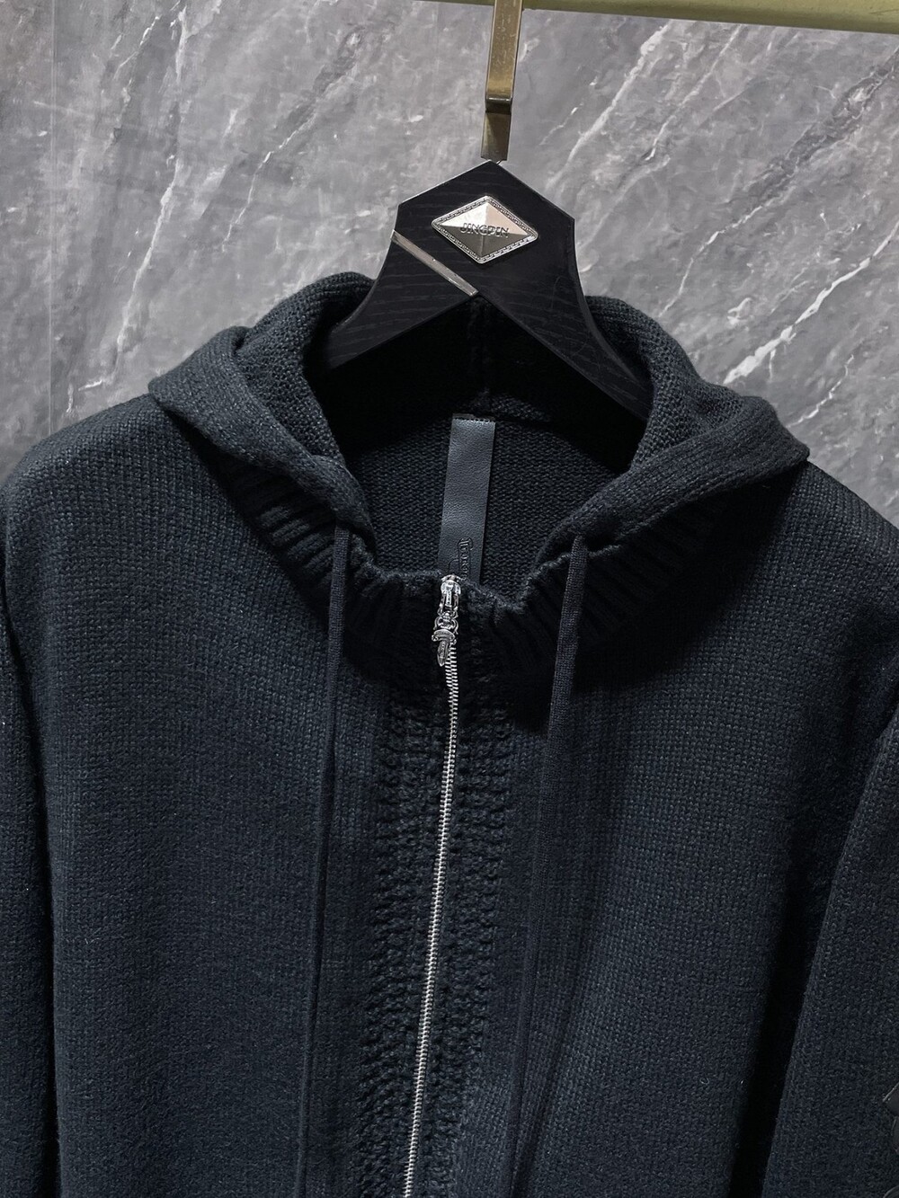 #CH 가죽패치 니트 후드집업 v