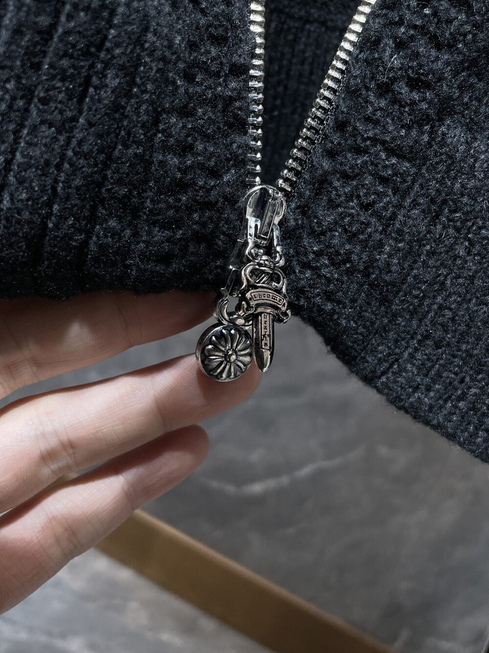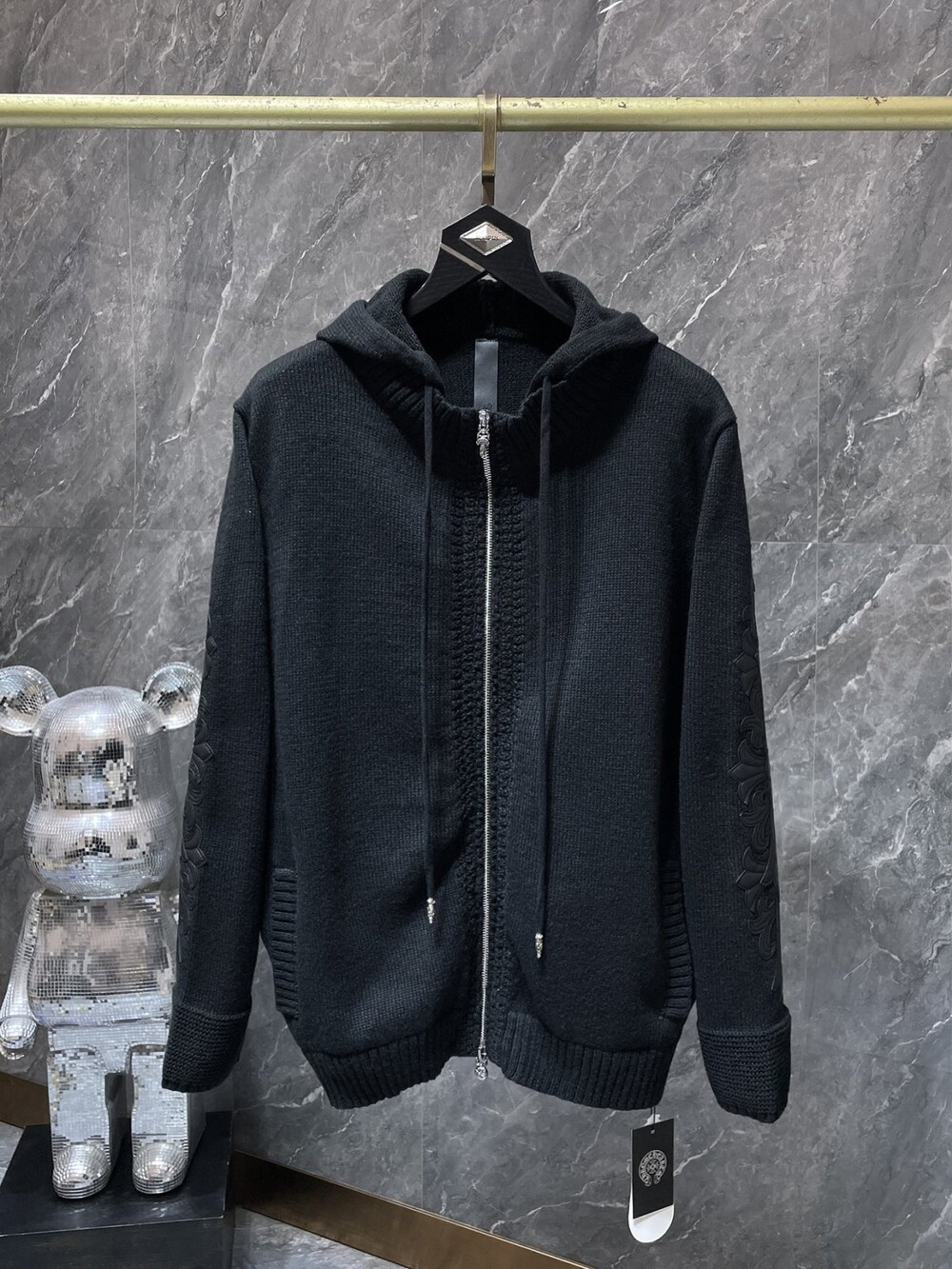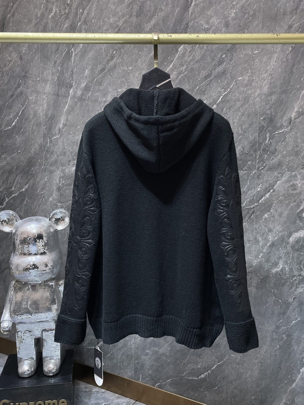 #CH 가죽패치 니트 후드집업 v