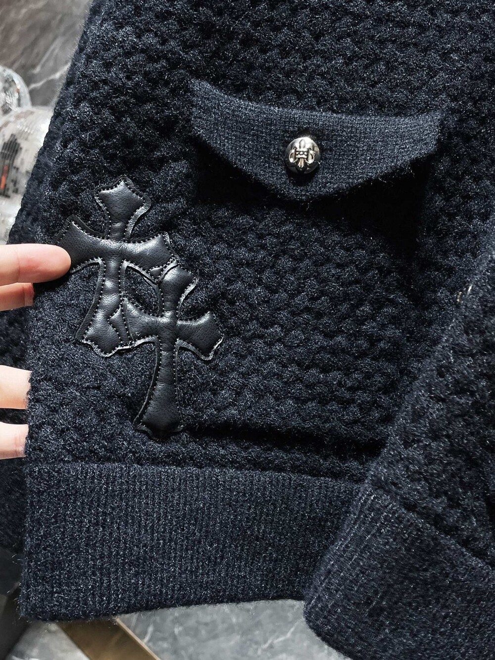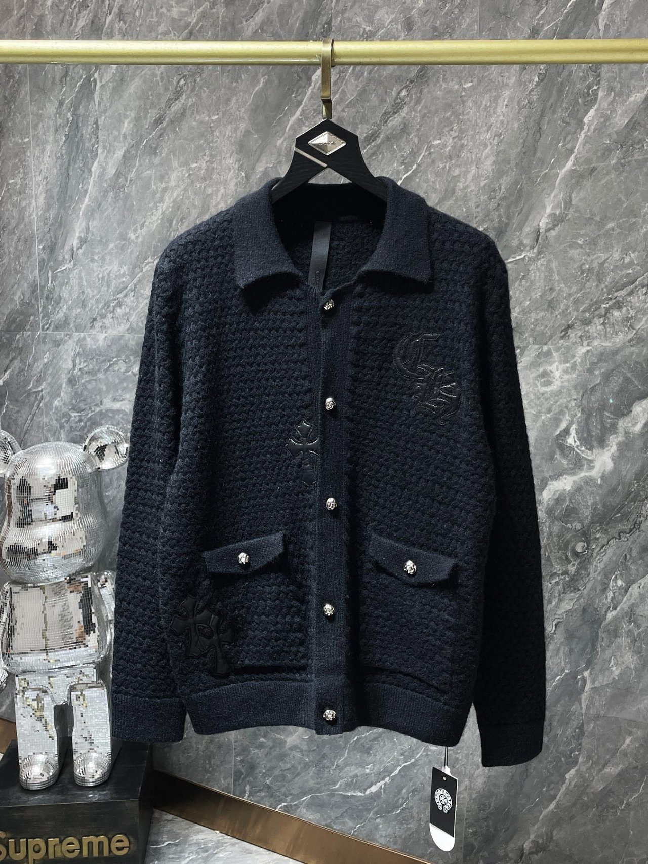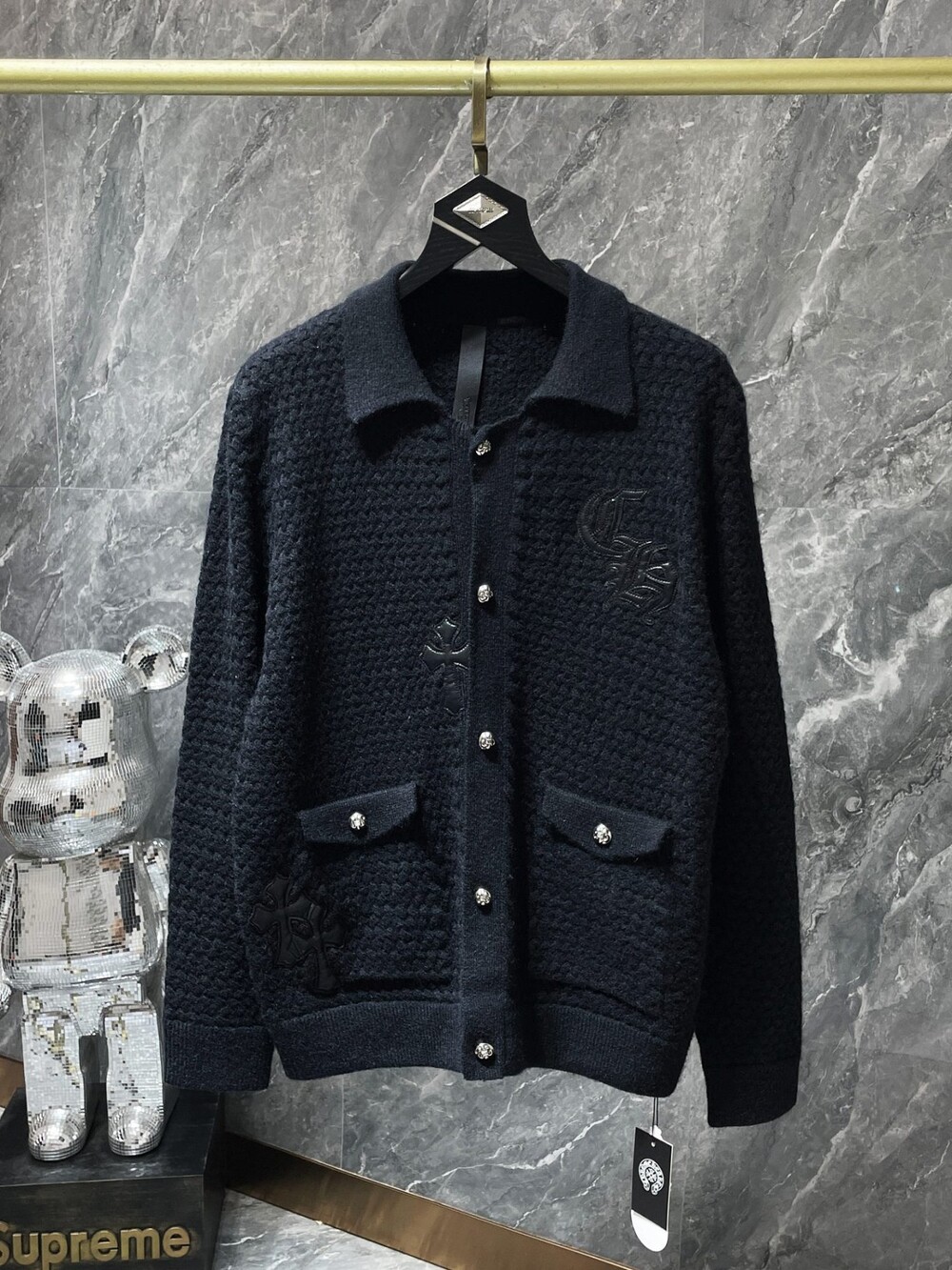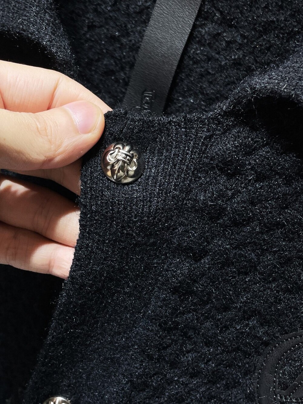#CH 가죽패치 버튼 카라 가디건 v