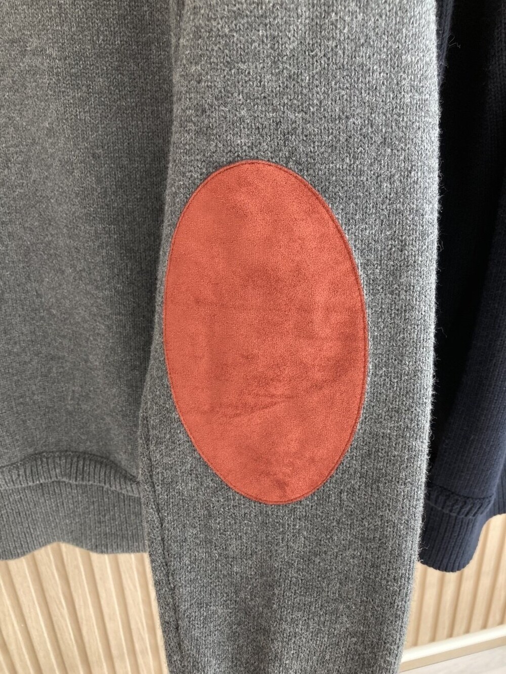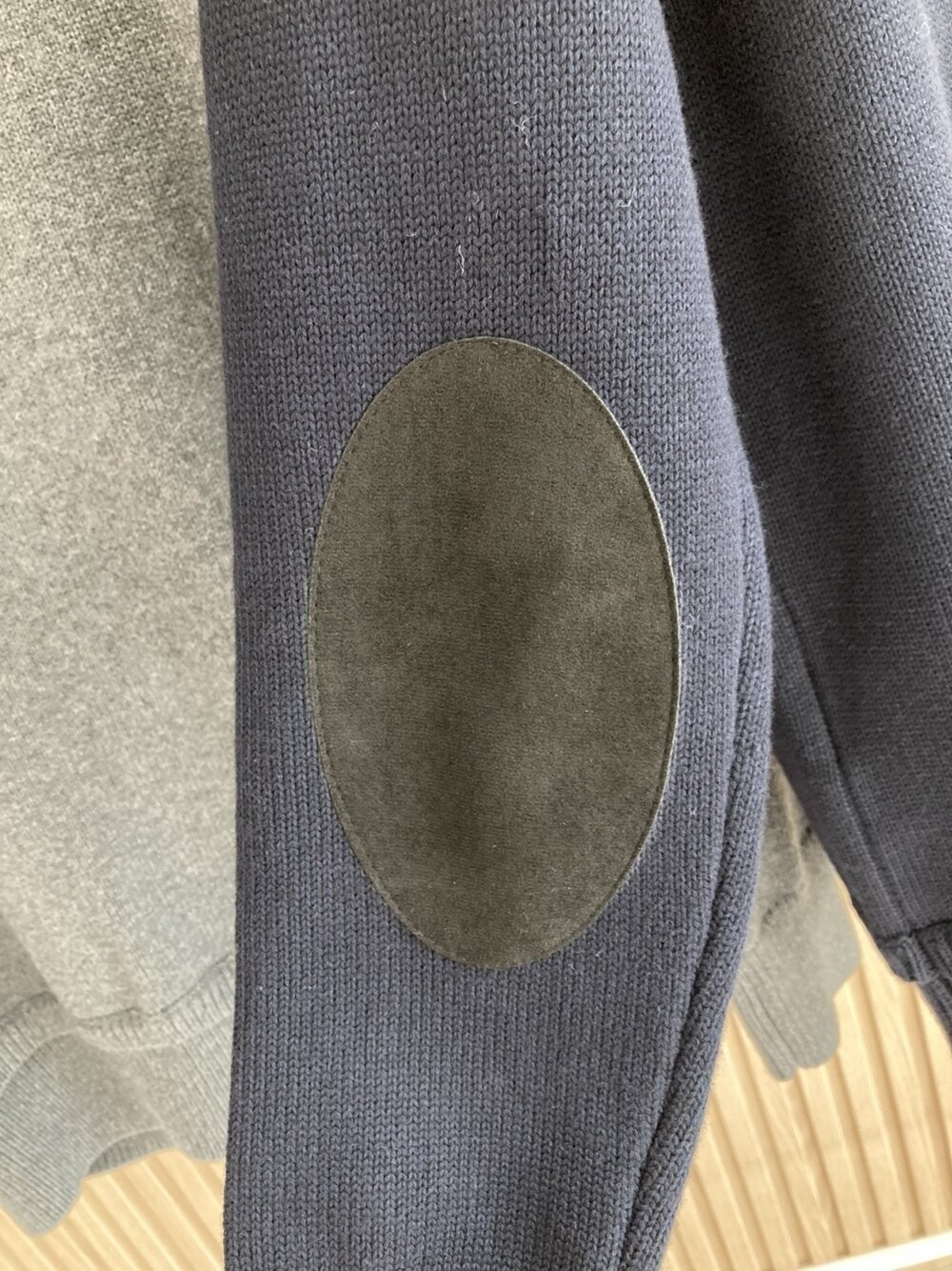 - MM 스테디셀러 아이템으로 팔꿈치 부분 스웨이드 가죽 패치와 뒷 옷깃쪽 브랜드 시그니처 스티치가 특징인 상품입니다. 브랜드의 시그니처 상품으로 매년 다른 소재, 다른 디테일들로 나오는 만큼 인기가 많고 Y넥, 암홀부분, 밑단과 소맷단에 골지 니트와 헤라시 봉제 디테일, 엘보우 쪽 가죽 패치 등 많은 디테일이 들어가 실물로 보았을 때 훨씬 고급스러운 제품입니다.