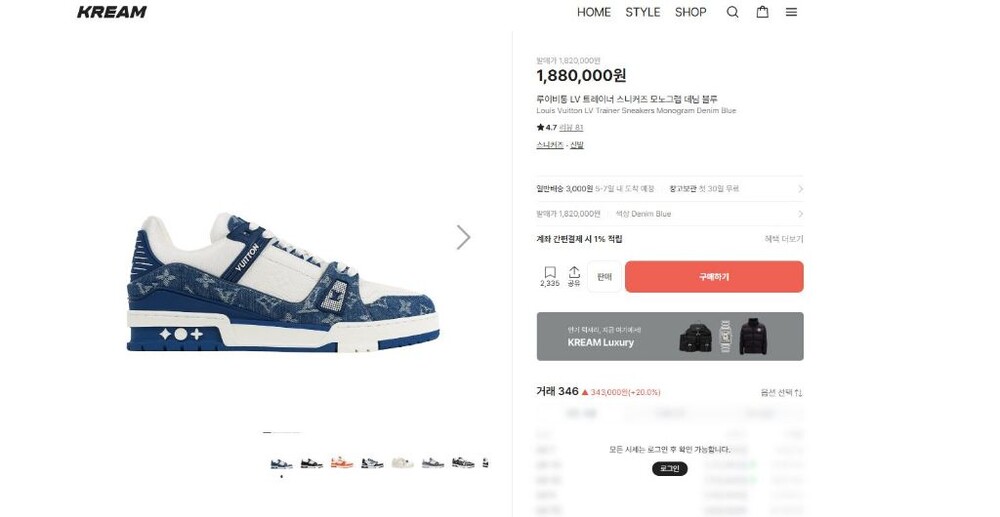 #LV 트레이너 스니커즈 모노그램 데님 블루