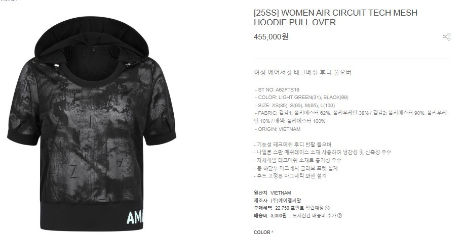 #AZ 여성 에어서킷 후디 풀오버 반팔 bb