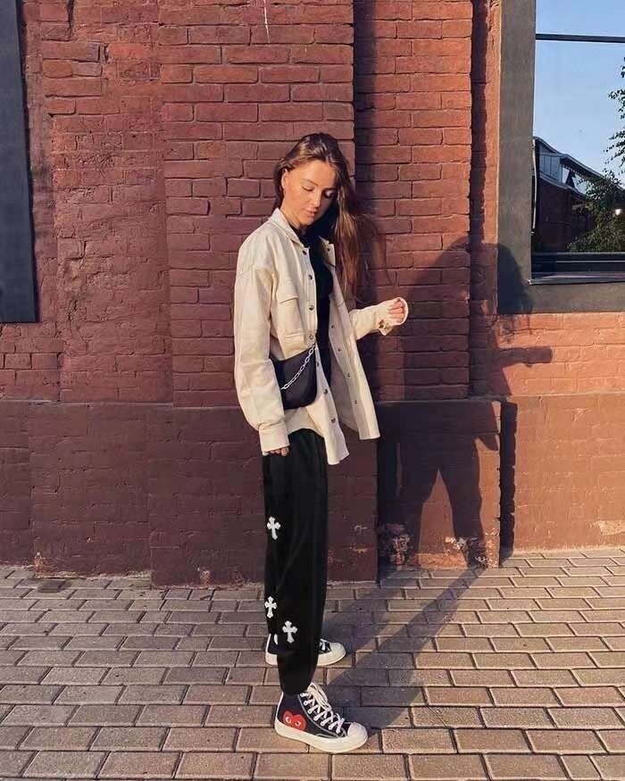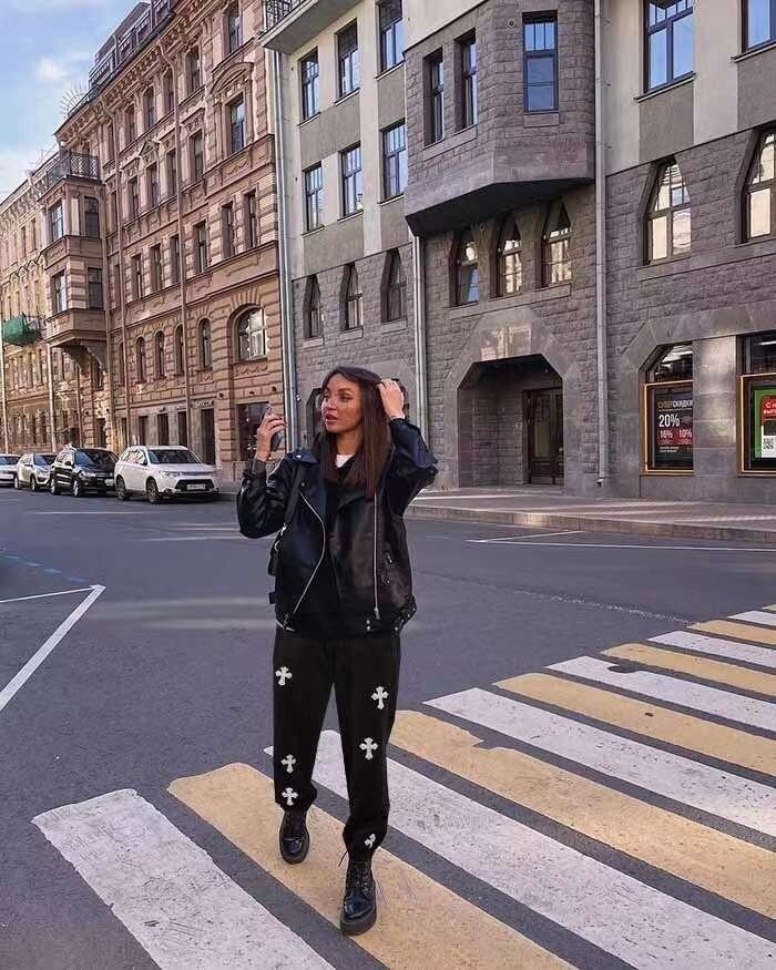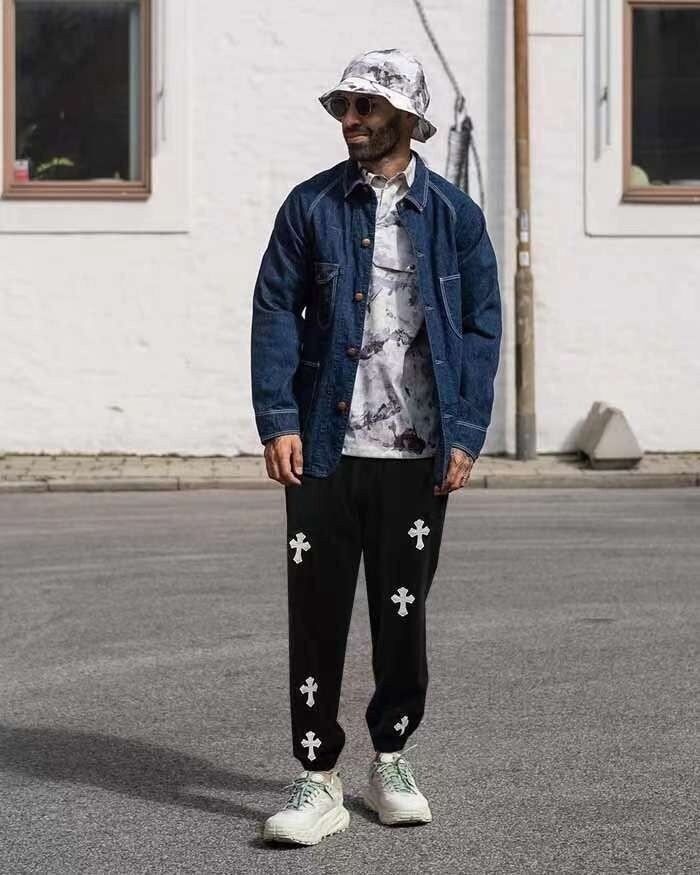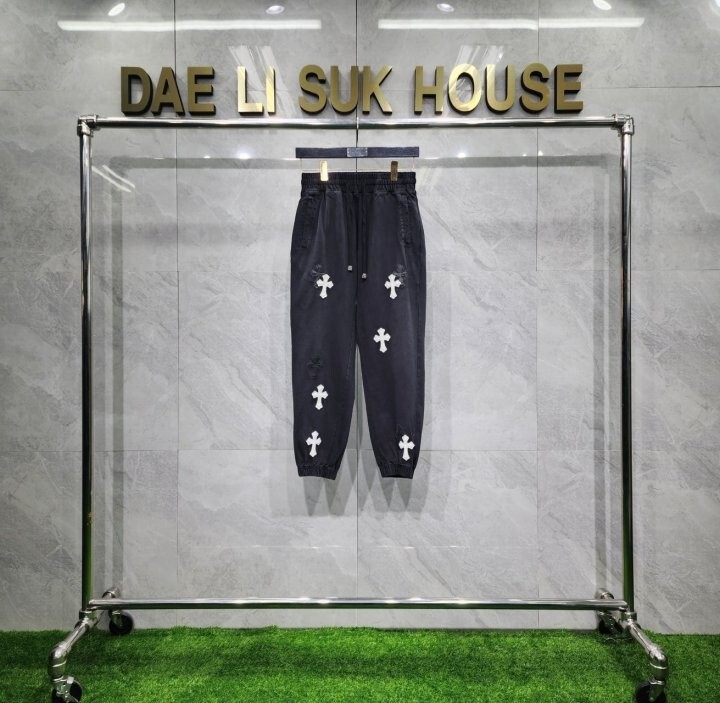#CH 십자가 레더패치 워싱 트레이닝팬츠 bj
