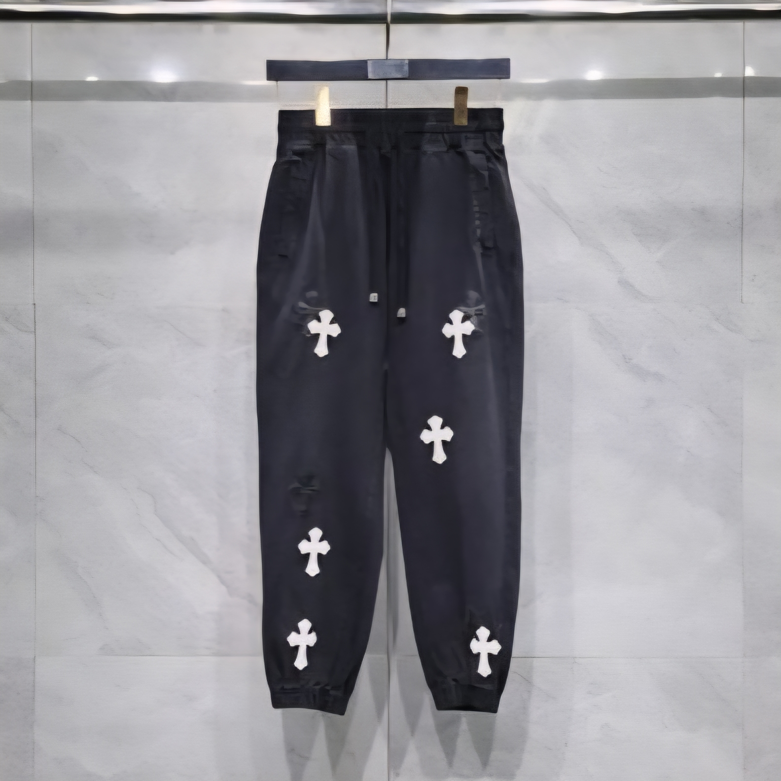 십자가 레더패치 워싱 트레이닝 팬츠