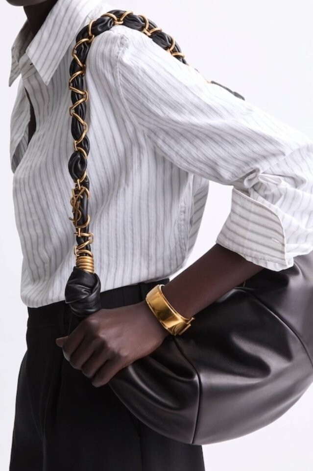호보백, 램스킨 소재, 우븐 CASSANDRE 주얼리 체인 스트랩.