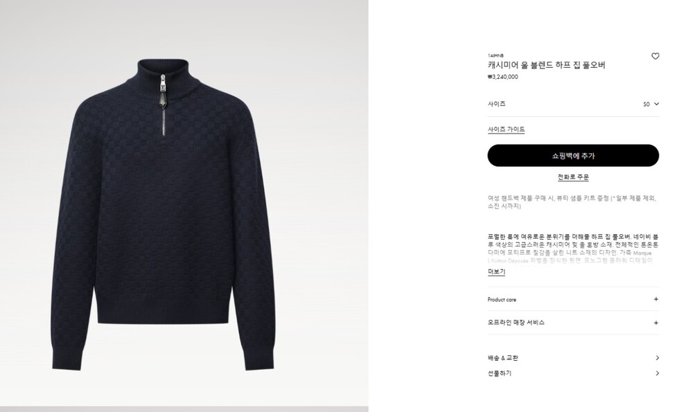 #LV 캐시미어 울 블렌드 하프 집업 풀오버