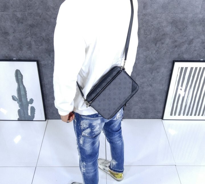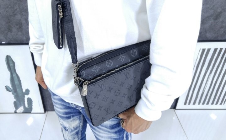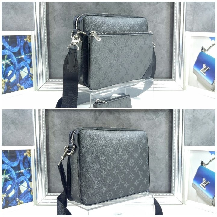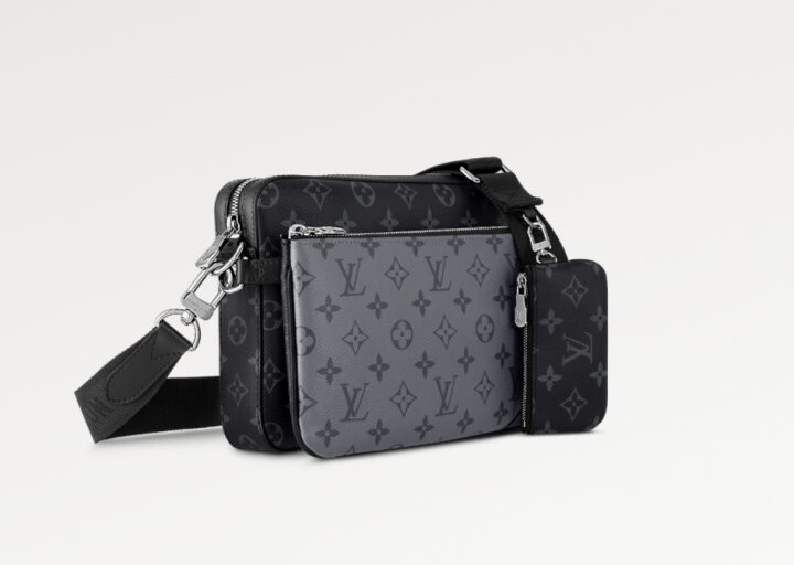 모노그램 이클립스 캔버스와 모노그램 이클립스 리버스 캔버스가 조화를 이루는 트리오 메신저 남성 백.